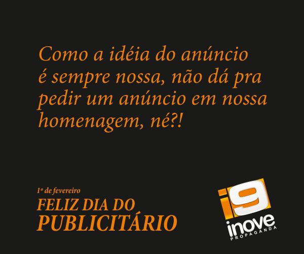 Nada melhor que inaugurar essa pagina 'Publicidade' no web-site, comemorando o dia do publicitário que é muito cobrado e pouco reconhecido ! Você fazer uma arte legal, ter um projeto show é muito massa. Mas nada é tão satisfatório quanto o cliente gostar do que você gerou ... As vezes da dor de cabeça, enche a paciência, da nó na mente . Mas no final sempre damos um jeitinho pra tudo ... Achamos tudo muito lindo ou tudo muito feio, sim somos extremos e egoístas mas o mais importante é quando nos esforçamos pra tudo ficar sempre muito massa . Sim nossa cuca é uma locomotiva impulsiva ambulante, mas se não fosse assim não teria graça também . Somos os donos dos gostos mais estranhos também, e isso é o que faz a coisa ficar divertida, apreciar as coisas loucas da vida porque somos os loucos publicitários . Parabéns a todos publicitários !